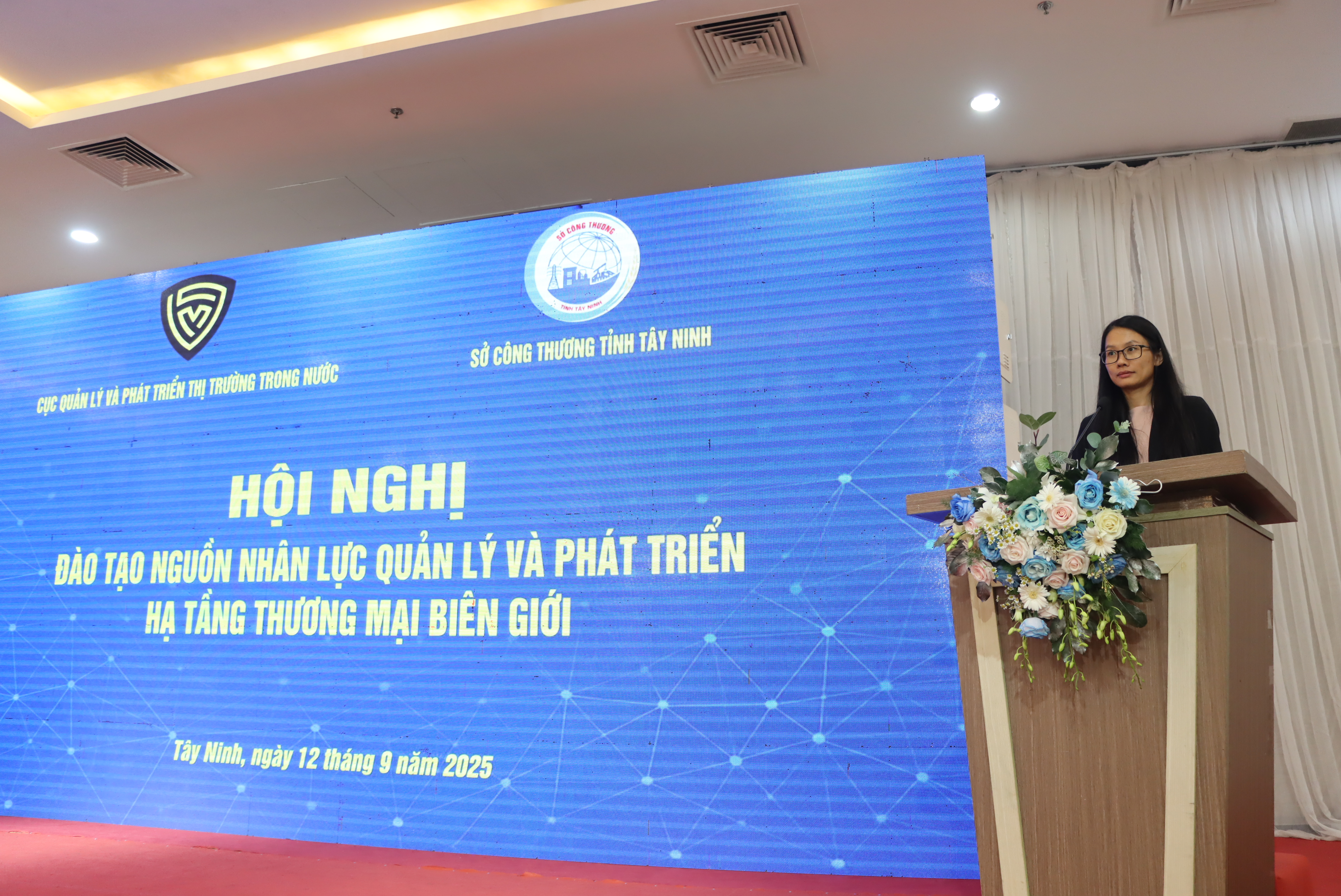 Hơn 100 đại biểu từ các sở, ngành và địa phương biên giới đã tham dự Hội nghị Đào tạo nguồn nhân lực Quản lý và Phát triển hạ tầng thương mại biên giới do Cục Quản lý và Phát triển thị trường trong nước (Bộ Công Thương) phối hợp với Sở Công Thương Tây Ninh tổ chức ngày 12/9/2025. Tại đây, trên 10 tham luận được trình bày, tập trung vào giải pháp nâng cao chất lượng nhân lực phục vụ công tác quản lý và phát triển hạ tầng thương mại khu vực biên giới.