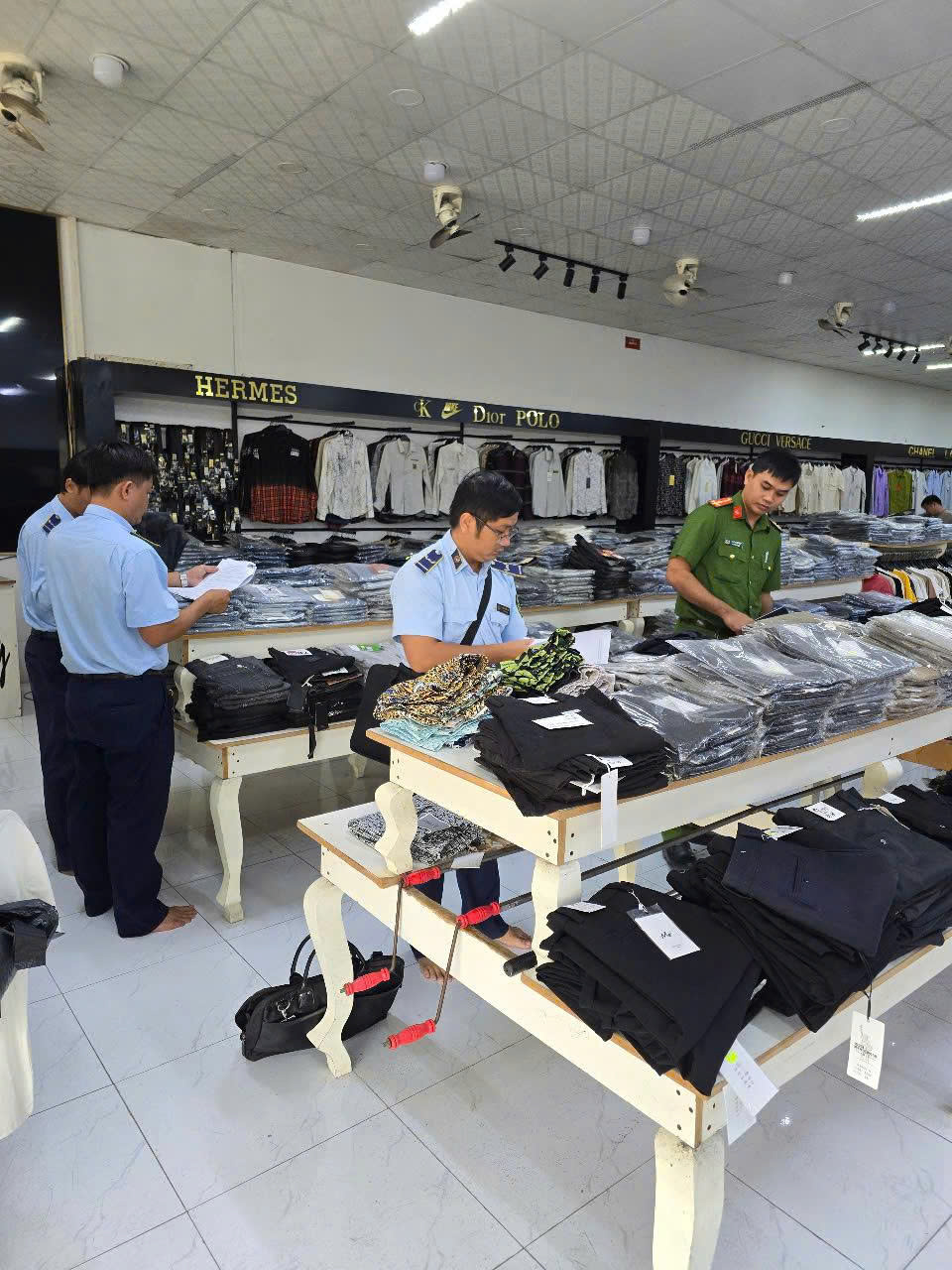 Cũng trong ngày 11/6/2025, Đội QLTT số 4 kiểm tra đột xuất hộ kinh doanh S.F.S có địa điểm kinh doanh trên địa bàn phường Dương Đông, thành phố Phú Quốc, tỉnh Kiên Giang. Qua kiểm tra, Đội phát hiện hộ kinh doanh có trưng bày 144 sản phẩm túi xách các loại, có dấu hiệu giả mạo nhãn hiệu các nhãn hiệu GUCCI, CHANEL, BURBERRY, tổng giá trị 165 triệu đồng. Toàn bộ hàng hóa chưa được hộ kinh doanh xuất trình hóa đơn, chứng từ có liên quan. Đội QLTT số 4 đã tạm giữ toàn bộ tang vật, tiến hành các biện pháp nghiệp vụ, liên hệ với đại diện chủ thể quyền nhãn hiệu tại Việt Nam để xác minh, làm rõ hành vi vi phạm.