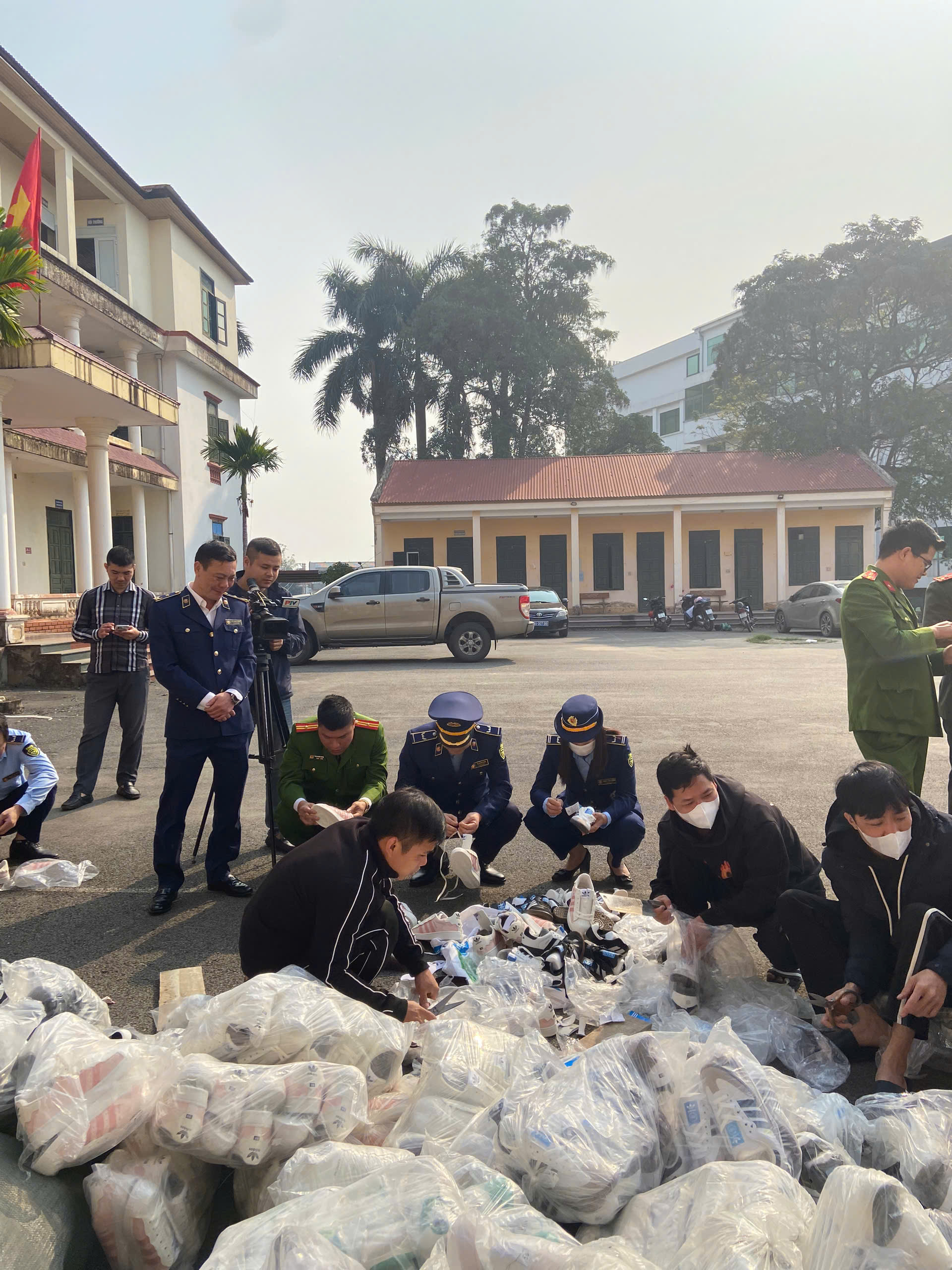Kết quả khám kho phát hiện hàng hoá là 5.820 đơn vị sản phẩm gồm giày, giày sục mang nhãn hiệu “adidas và hình", giày mang nhãn hiệu "NIKE và hình". Các nhãn hàng adidas, NIKE được in và gắn trực tiếp trên sản phẩm, không thể tách rời với sản phẩm. Qua xác minh làm việc, xác định toàn bộ hàng hóa trên là hàng hoá giả mạo nhãn hiệu và vụ việc có dấu hiệu tội phạm “Tội xâm phạm quyền sở hữu công nghiệp”. Đội QLTT số 8 tiến hành bàn giao toàn bộ hồ sơ vụ việc và tang vật cho Cơ quan CSĐT, Công an huyện Thanh Thuỷ để tiếp tục xác minh, điều tra và xử lý theo quy định của pháp luật.